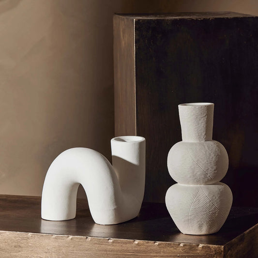 Rippled Textured Natural Clay Vase