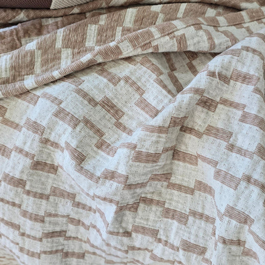 Mosaic Jacquard Double Sided Linen Cotton Throw 220x150cm | Mocha