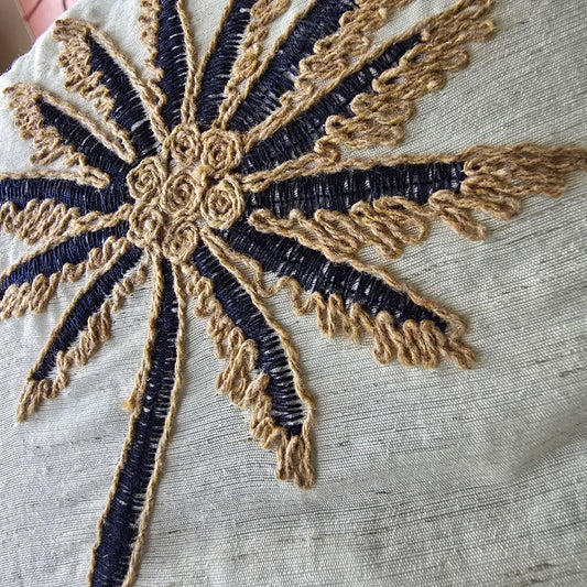 Palm Tree Embroidery Cotton Cushion 55cm Square - Off White