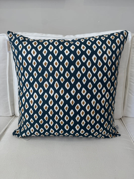 Custom Heavy Linen Diamond, Blue/Tan Cushion 55x55