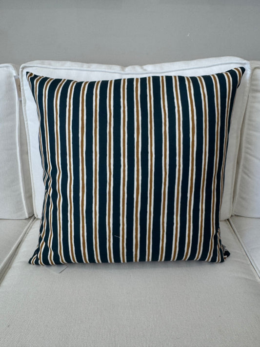 Custom Heavy Linen Stripe, Blue/Tan Cushion 55x55