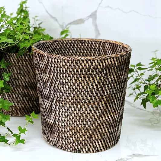 Brown Rattan Bin 25 x 25 x20 cm