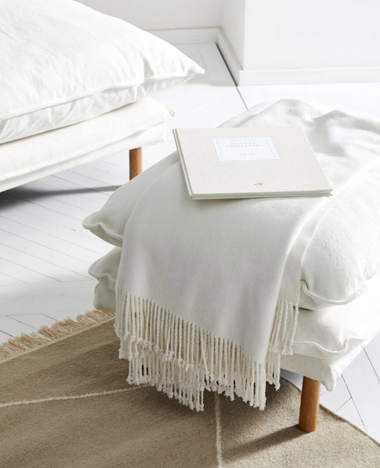 Luca Boho Linen Throw - White 150 x 200 cm