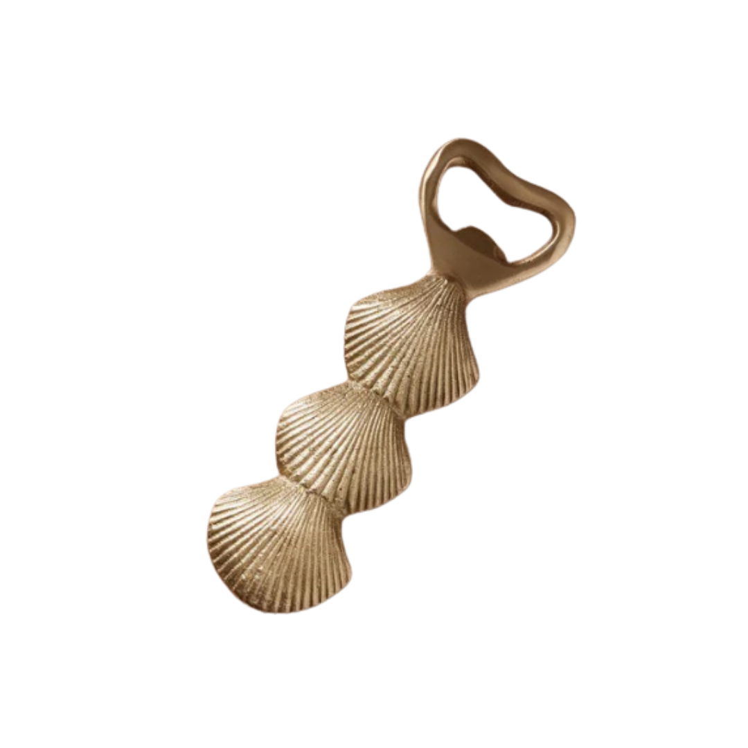 The Coast Shell Bottle Opener is a designer bottle opener that captures the essence of the ocean through its unique shell handle design, formed by three overlapping shells that gracefully comprise the handle. Made from brushed brass in a vintage gold colour, this bottle opener radiates elegance, adding a touch of luxury to your barware collection.