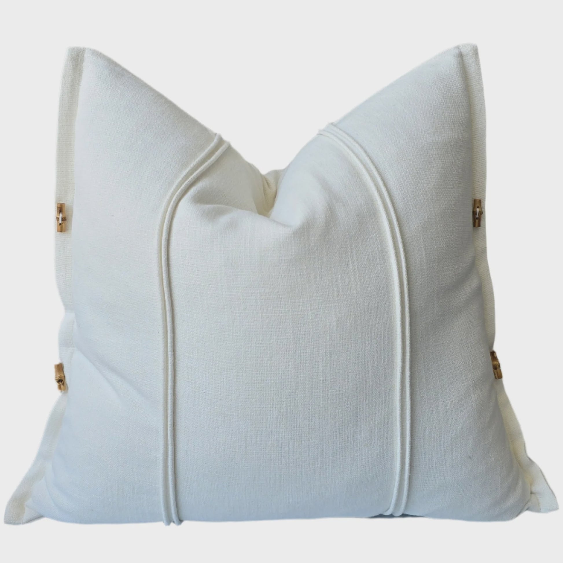 Alora Linen Cotton Cushion 55cm Square - White | Wooden Button