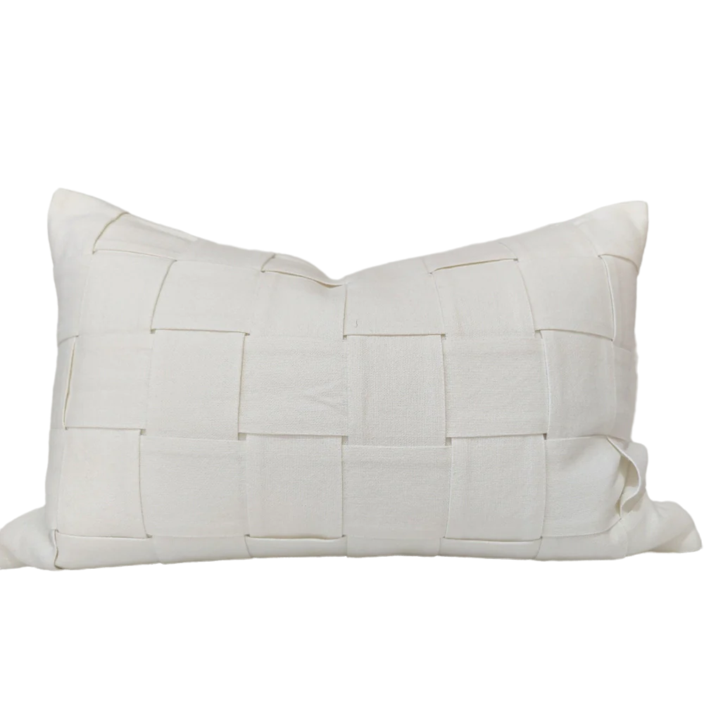 French Linen Cotton Cushion 40 x 60 cm Lumbar - Intertwined White