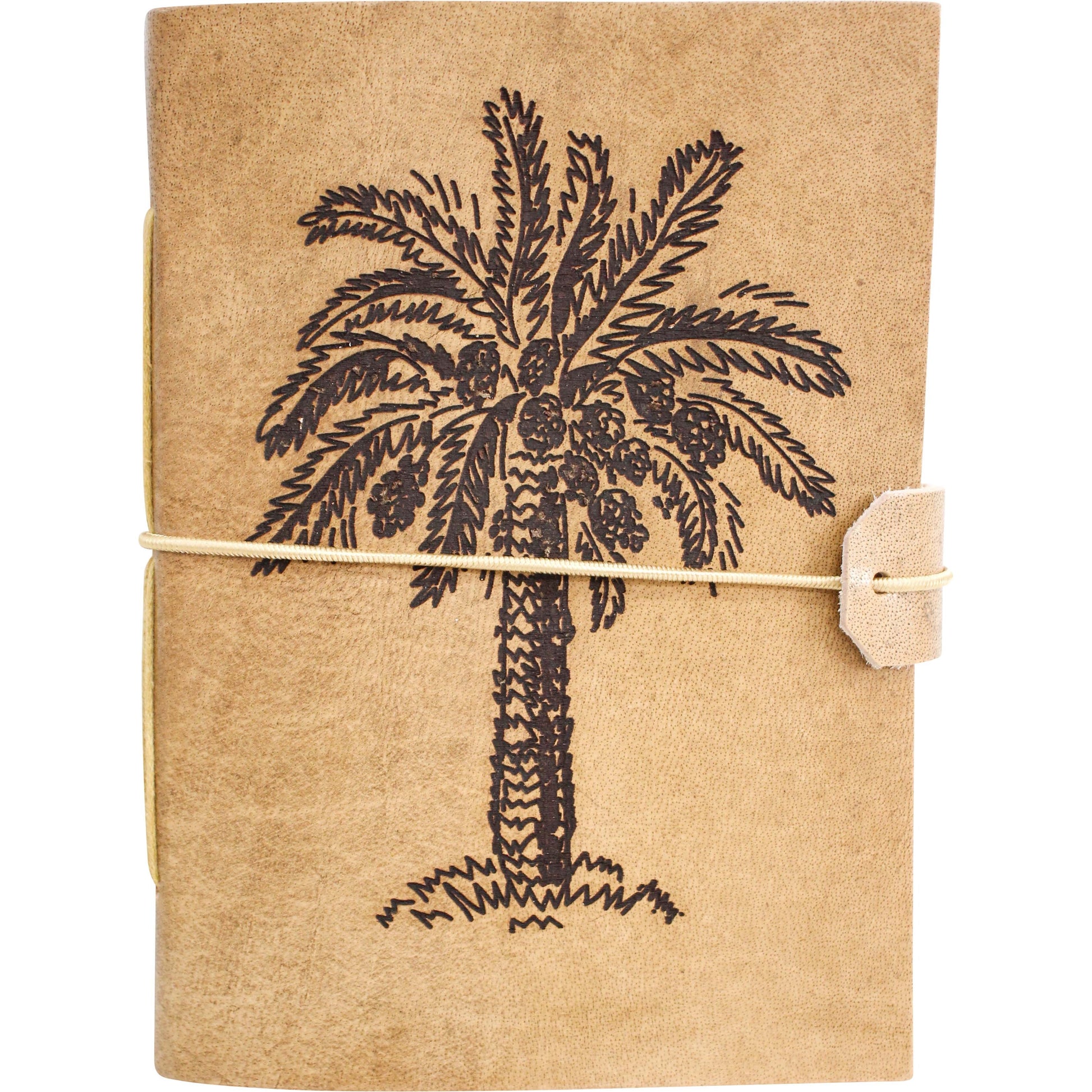 Palm embossed leather notebook. This item is handmade from natural material and hand finished so variations will occur between each item.