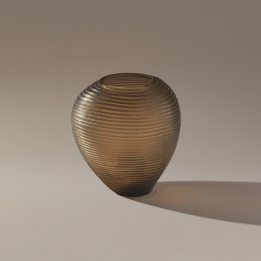 Crafted from high-quality glass, the Lino Vase boasts an organic rounded shape that is both elegant and unique. The stunning amber colour adds a warm and inviting tone to any space. The Lino Glass Vase also features delicate ripple lines that run horizontally around the vase, adding textural interest and creating a dynamic visual effect, especially in the shadows of this translucent glass . Whether you're using it to display a beautiful bouquet of flowers or as a standalone decorative piece, this vase is sure to make a statement in any room. Available in Medium and Large.