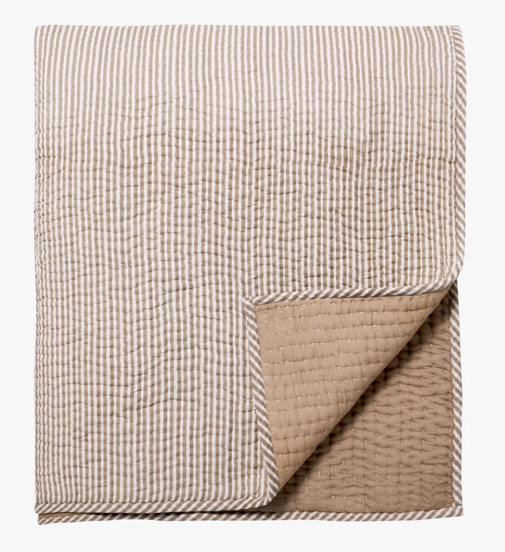 Embracing the traditional craft of quilting in a contemporary way, our Marseille collection is hand-quilted by artisans in Delhi on quality cotton voile with a 100% cotton voile reverse. Featuring a slim café ticking stripe on warm white, Marseille adds warmth and texture to your bedroom.