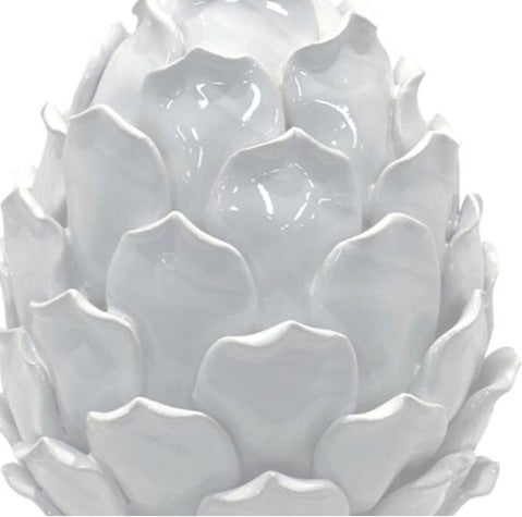 This White glazed ceramic Mode Pinecone truly defines bringing nature's beauty into the home with its formations is truly a unique statement piece for your home.