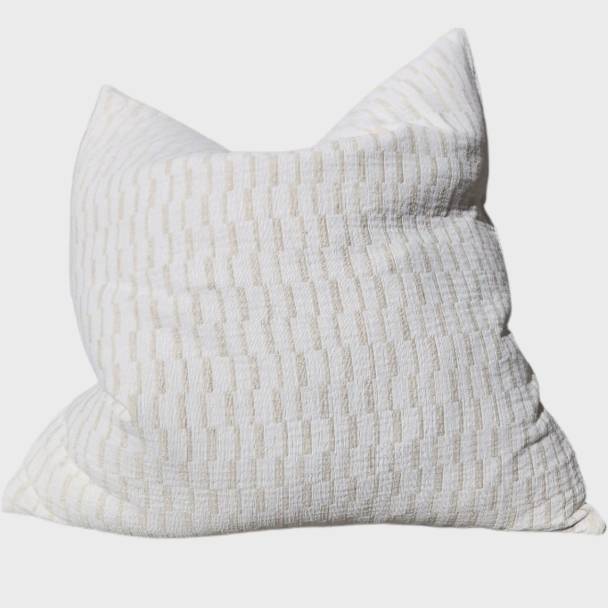 Mosaic Jacquard Linen Cotton Cushion 55cm Square | Off White & Beige