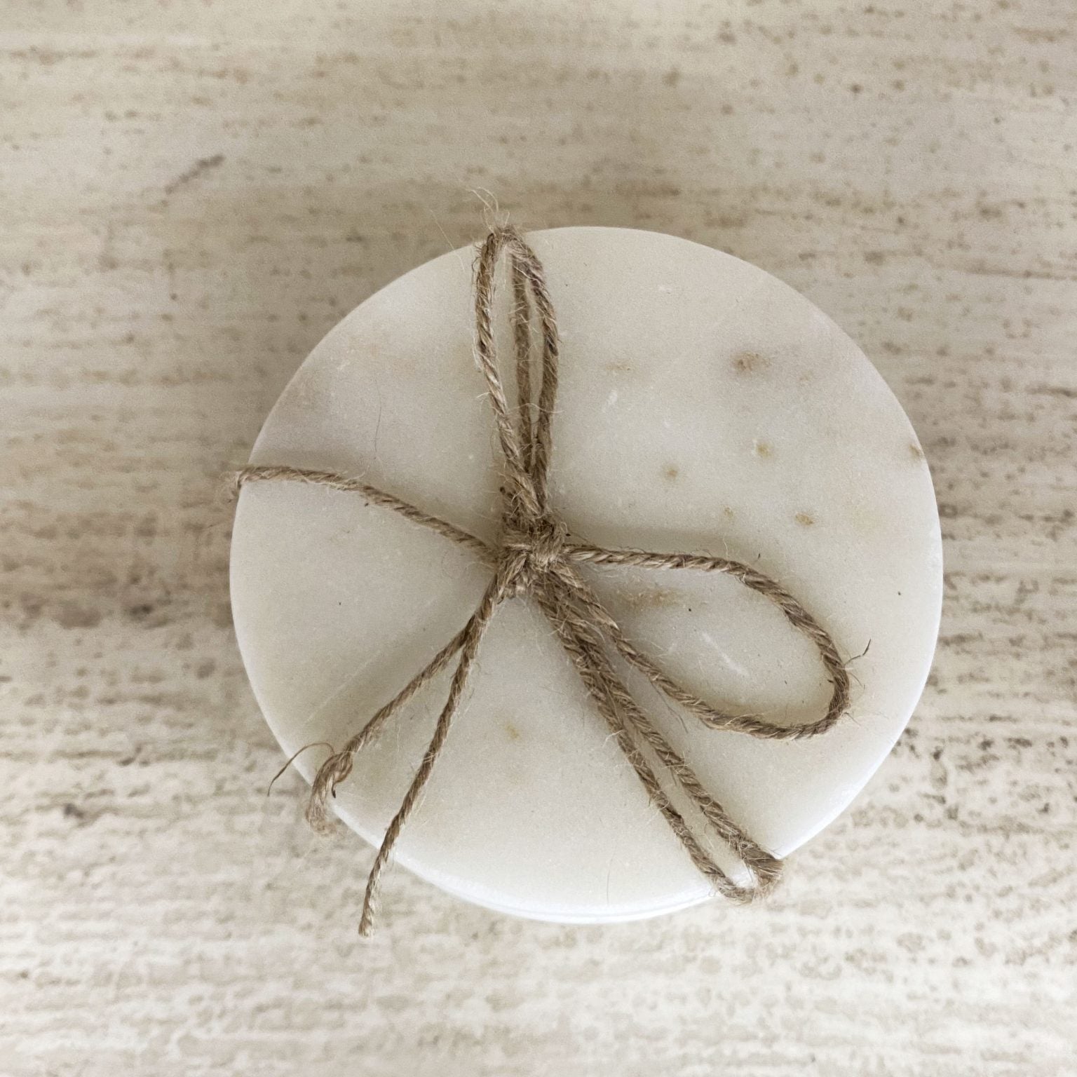 Set of 4 Round Marble coasters in White. Colour of marble may vary with each set.