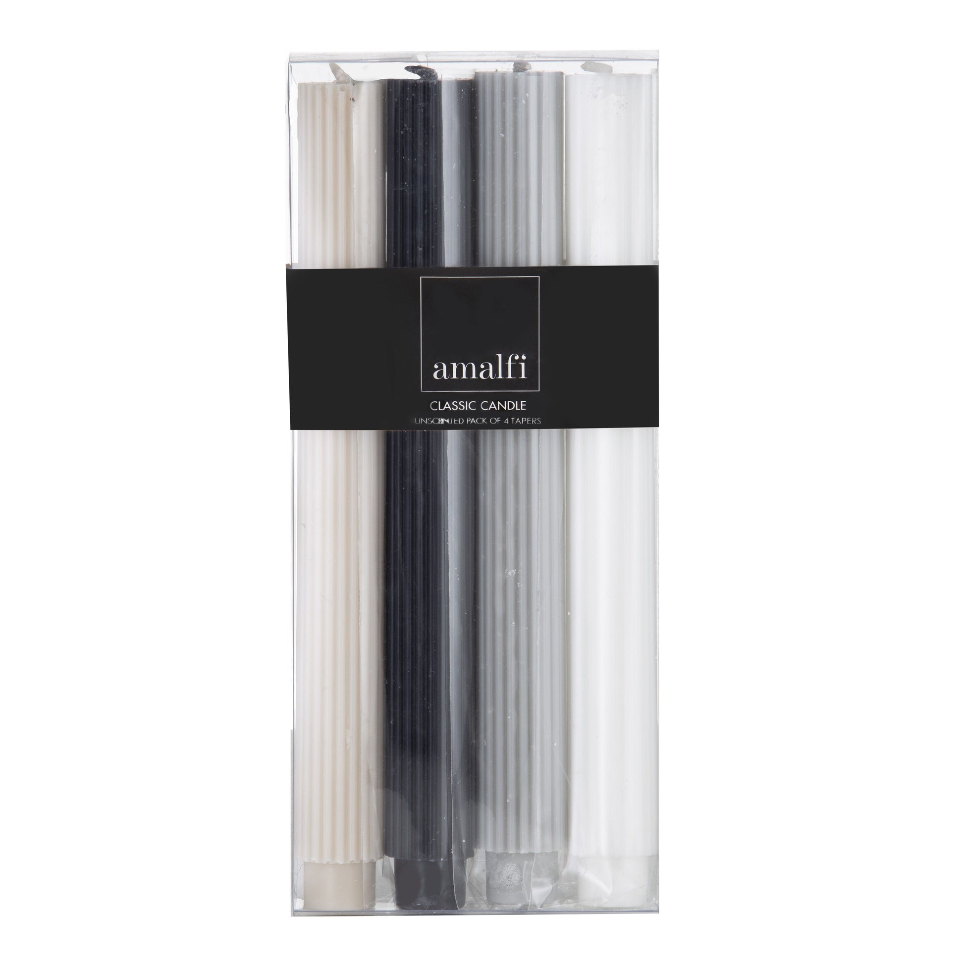 Ribbed Dinner Candle set/4 BLK/WHT/GREY/TAUPE
