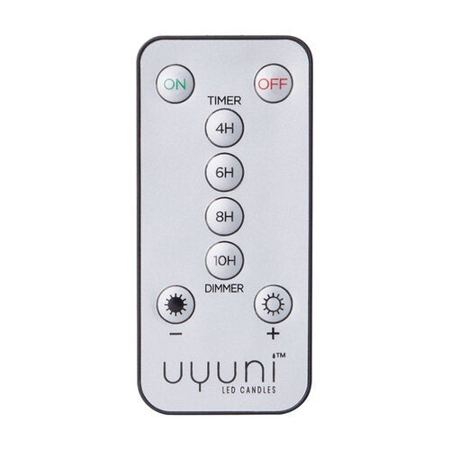 The Uyuni Lighting remote control allows you to turn the Uyuni LED candles on and off with just a push of a button. You can also use the remote control to set a timer that will turn the candles off automatically after either 4, 6, 8 or 10 hours. What’s more, the remote control has a 3-position dimming function that allows you to set the perfect mood for any occasion while also extending the candles’ battery life.